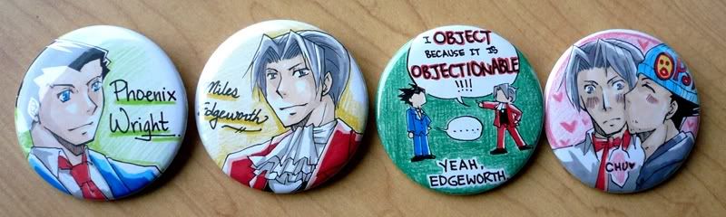 Mar. 11th, 2008 05:42 pmMuwahaha. Guess what I did today? I MADE PINS!!!! Phoenix Wright ones!! <3<3